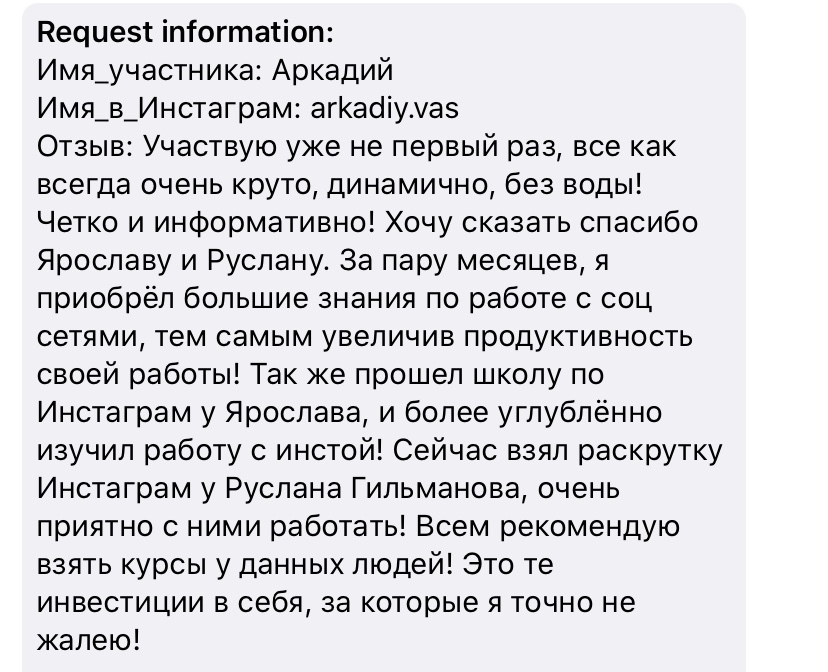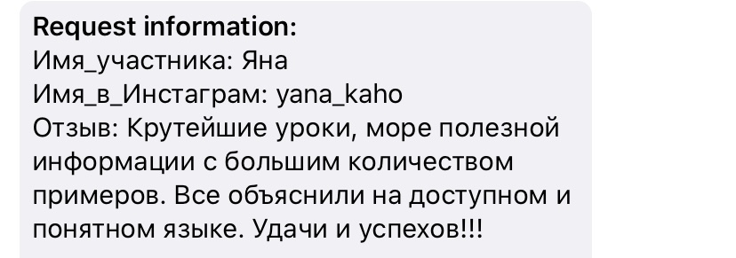 - Изучив материалы ты захочешь начать вести инстаграм, пропадут страхи и увидишь перспективу выйти на новый уровень.